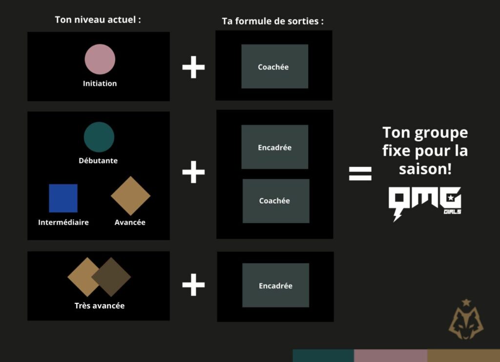 Tu trouveras ici les informations concernant la formule de sortie (encadrée ou coachée) et comprendre à quoi t’attendre de chaque niveau ou rythmes en montée.